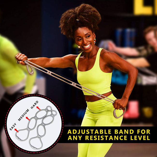 - ADJUSTABLE 7 RING FITNESS BANDS: Add multiple levels of resistance to your training; this innovative elastic band features 7 rings that are used as handles or straps; to adjust the resistance levels of the workout band, you change grip handles for more or less resistance as needed