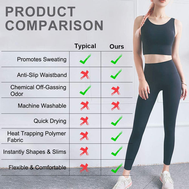 【REVOLUTIONARY FABRIC】Nigecue's proprietary blend of fabrics was specially selected to create the ultimate women's slimming leggings. The leggings consist of two layers, OUTSIDE: 90% Polyester & 10% Spandex, slims and shapes your waist, butt, and thighs immediately; INSIDE: 100% Neoprene-Free Polyurethane, increases your core temperature to promote sweating. Compared to low-par neoprene fabric, it's Lighter, Dries Quicker.