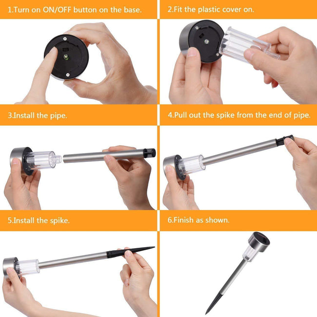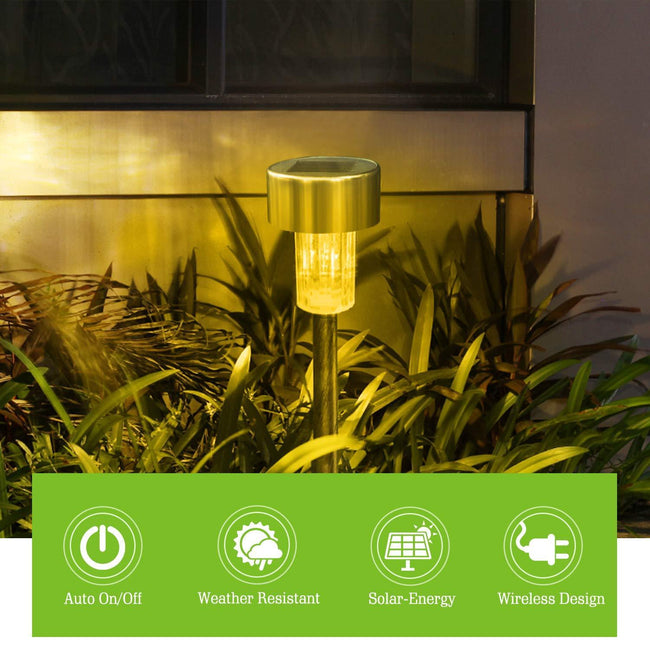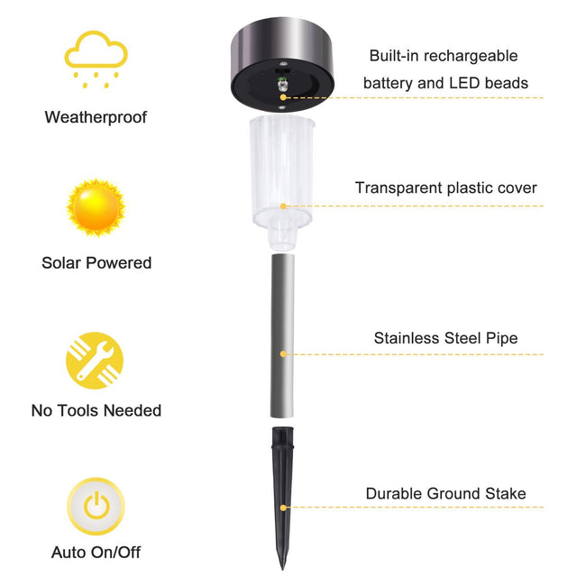 【WATERPROOF】 Solar garden lights are made of stainless steel. They are very durable and don't have to worry about bad weather. Including rainy nights, and small snowy days.