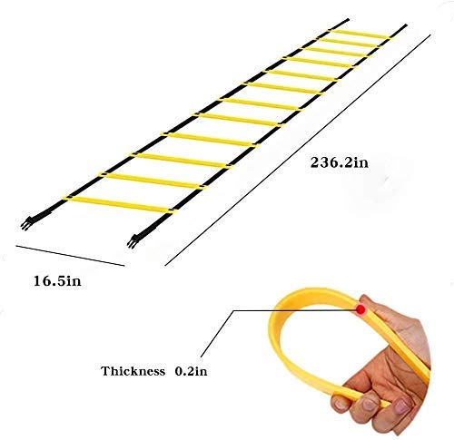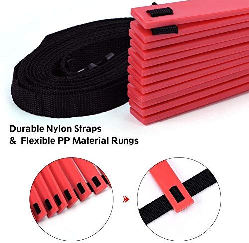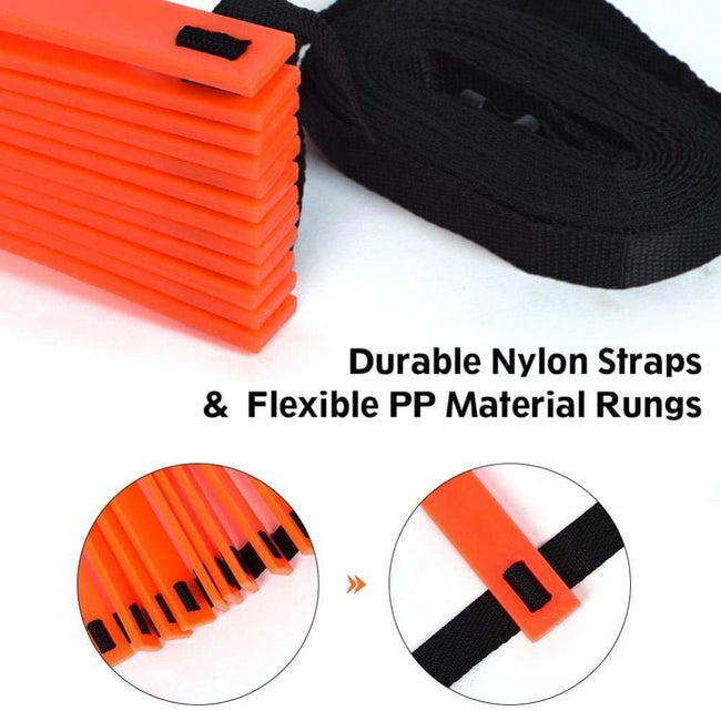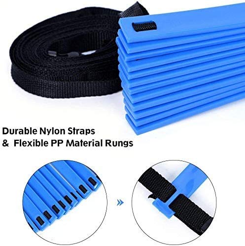 Material: High-quality PP material, last for years of use and training. Adjustable flat and flexible 8 plastic rungs and the broad durable 4m nylon straps speed ladder, for agility and quickness training.