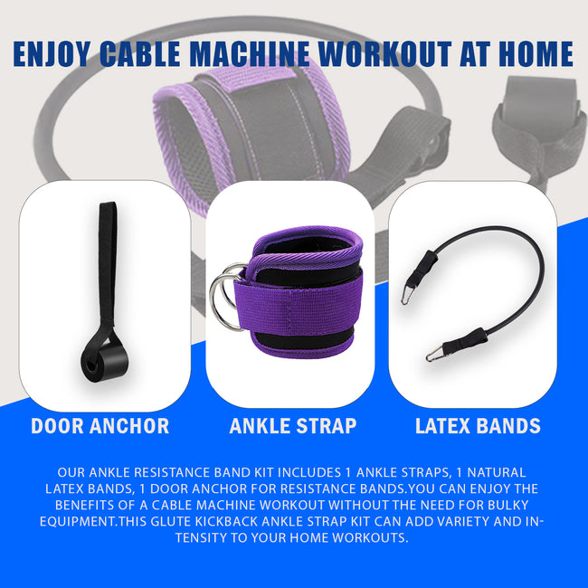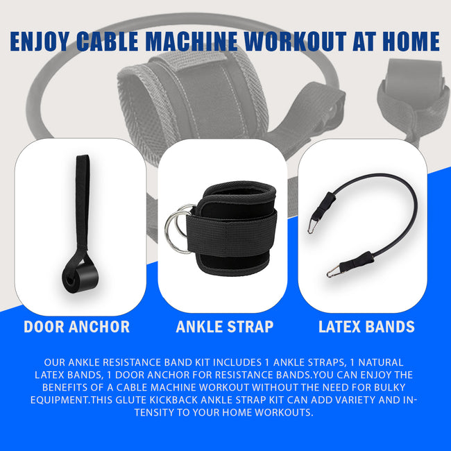 • 【Enjoy Cable Machine Workout at Home】Our Ankle Resistance Band Kit includes 1 Ankle Straps, 1 Natural Latex Bands, 1 door anchor for resistance bands. If you have limited space at home, this butt exercise equipment is a great solution.You can enjoy the benefits of a cable machine workout without the need for bulky equipment.This glute kickback ankle strap kit can add variety and intensity to your home workouts.