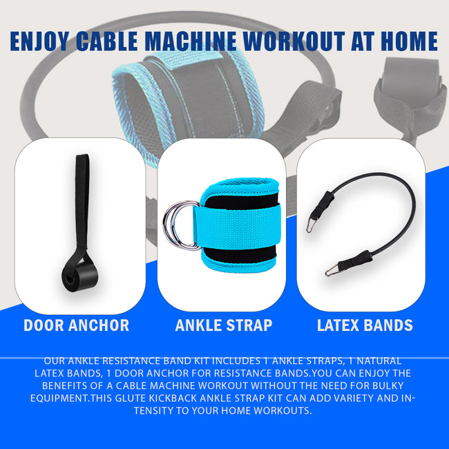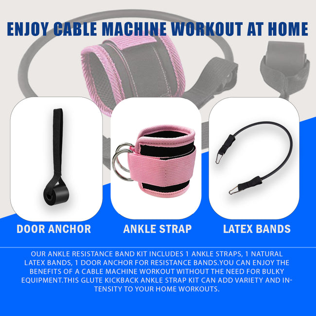 Cable Ankle Attachments for Gym Kit,D Rings Cable Kick Back Ankle Straps,Leg Glute Exercise Equipment with resistance bands with door anchor,Resistance Band with Ankle Cuffs for Women
