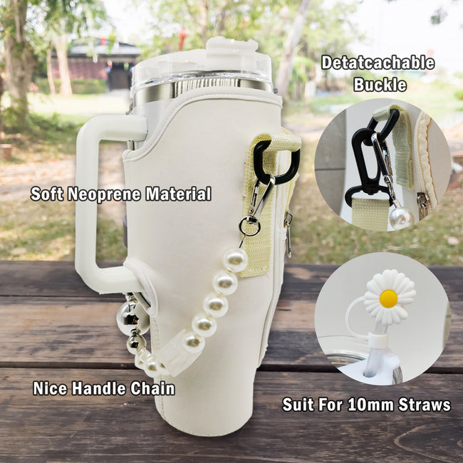 • 【Bonus with a Straw Cover】For Stanley Quencher 40 oz Cup Sleeve comes with 1 removable peals handle and 1 adjustable padded shoulder strap, the padded shoulder strap can be easily adjusted from 2.4 feet to 4.9 feet, which is suitable for most of the people's height and provides a better shoulder carrying experience. If you don’t like to use the shoulder strap, the extra peals handle strap is the other choice to releases your shoulder.