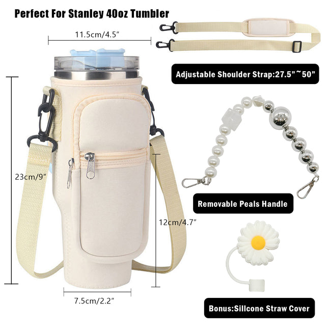 • 【Specifically Designed for Stanley 40oz Tumbler with Handle】Crafted with precision, our carrying bag is the perfect fit for the Stanley Quencher H2.0 FlowState Tumbler 40oz with Handle, Simple Modern 40 oz Tumbler with Handle, and Stanley Adventure Quencher Travel Tumbler 40 oz. It snugly wraps around your cup, and you can effortlessly place it in your car's cup holder while wearing the water bottle carrying bag.