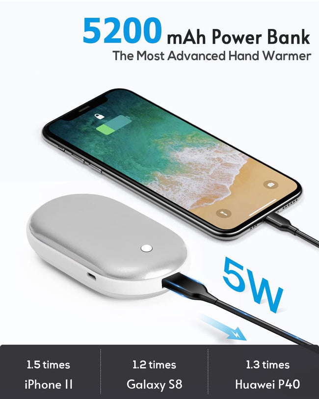 - [RECHARGEABLE HAND WARMER] Hand warmer and pocket power bank supply are two in one, compact and exquisite, it can be held in one hand, and can be carried in a travel bag or pocket! Very suitable for
