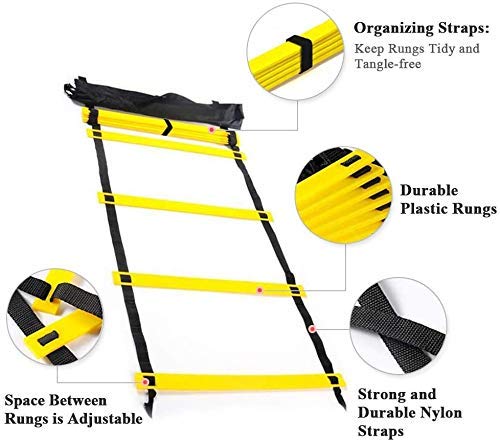 Material: High-quality PP material, last for years of use and training. Adjustable flat and flexible 8 plastic rungs and the broad durable 4m nylon straps speed ladder, for agility and quickness training.
