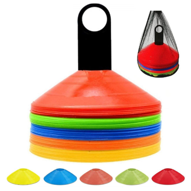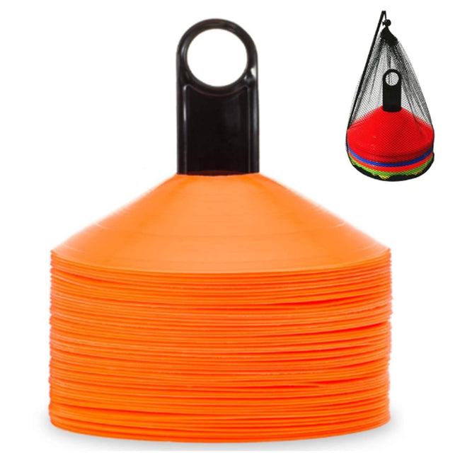 Ultimate Training : Agility training disc cones set that includes 50 soccer cones, 1 mesh carrying bag, 1 cone holder.