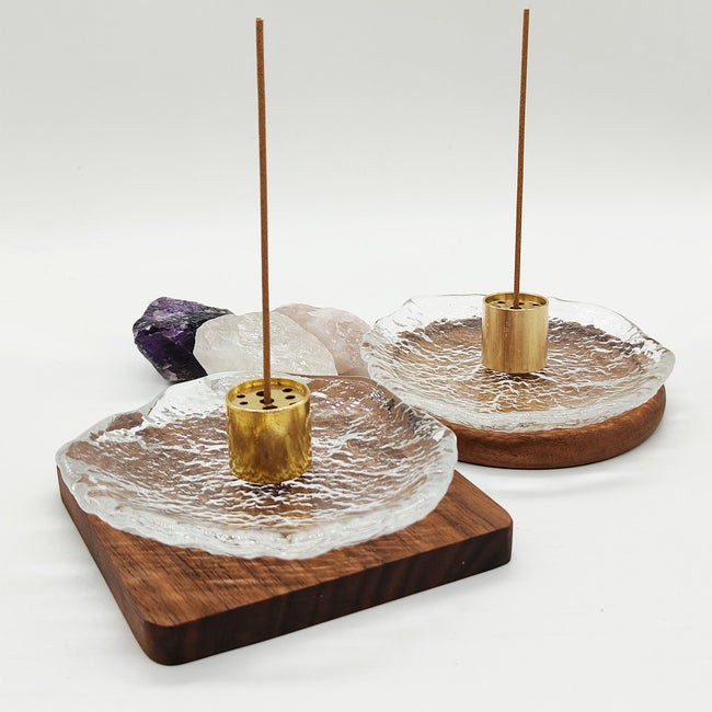 【Package Include】You will receive 2 set incence stick holder(Glass glacier plate+stick base)
