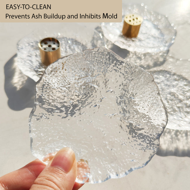 【Premium Material】This incense sticks holder is consist of glass holder plate and copper stick base, beautiful and elegant, solid and durable for long-term usage.