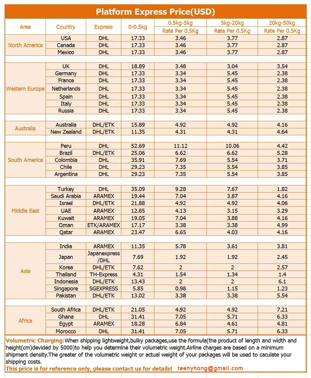 Activesale Ships almost all over the Globe. Find out various shipping services and fee (in USD) below: