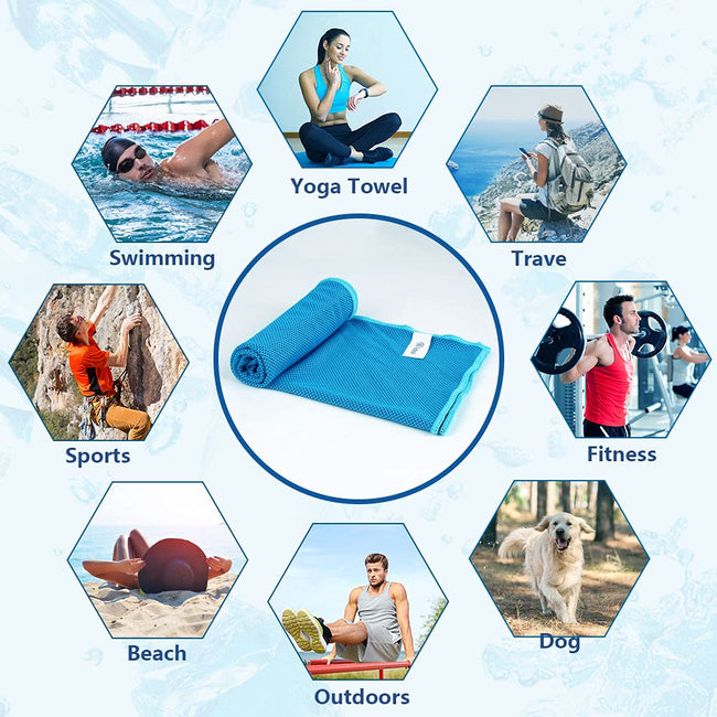 MULTI-PURPOSE TOWEL-- Microfiber cooling towel is perfect for hot flashes, outdoor activities, indoor exercise. They are the perfect devices for outdoor, sport, gym, yoga, workout, golf, running, fitness, hiking, camping.
