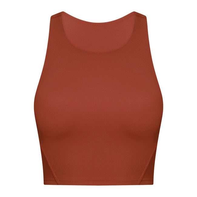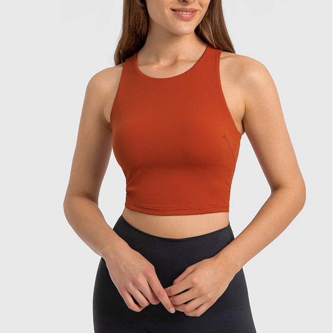 LuLu Logo Women FLAME Crop Tank Top Bra High Neck Sport Top with Built in Bra