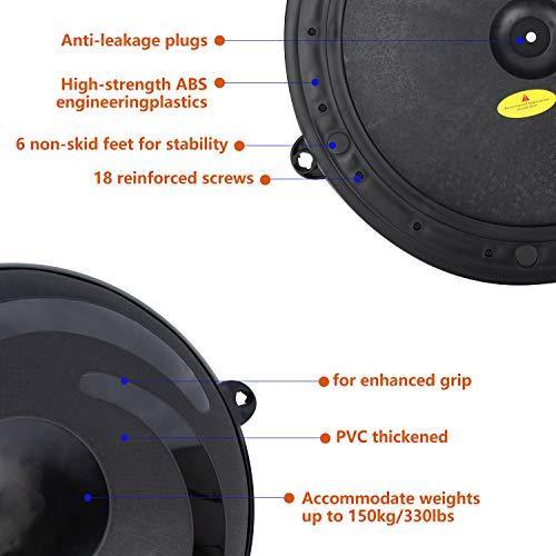 ANTI-SLIDE & ANTI-BURST DESIGN --- Yoga half ball upgraded anti-skid texture surface & anti-slide base to improve users' stability. Wear-resistant ABS base plus 6 non-skid feet and anti-burst technology gives you additional safe guarantee that allows you to safely stand, jump, kneel, or lay on this balance trainer, for a worry-free workout. Guarantee safety during use even when you're sweaty. JX FITNESS balance trainer ball is made from durable rubber and sturdy, ABS plastic.