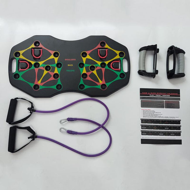 TONE, SHAPE AND FIRM YOUR WHOLE BODY: Effortlessly sculpt your upper and lower body with different attachments to tone and shape. Work your arms, legs and butt with two different workout resistance bands, achieve the perfect pushups with your choice of dynamic or static handle bars.