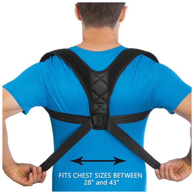 Verstellbare Haltungsstütze - Universalgröße. Die Korrektor-Rückenstütze hat verstellbare Träger, dank denen sie Teenagern und Erwachsenen, Männern und Frauen passt. Passend für 24-50 Zoll Brustumfang.