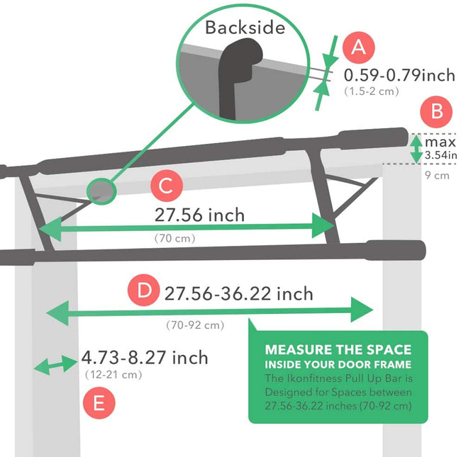 Erhöhte Stange - Geeignet für große Menschen. Entwickelt für breite Türrahmen mit einer maximalen Breite von 92 cm (36,22 Zoll) und einer Tiefe von 21 cm (8,27 Zoll).